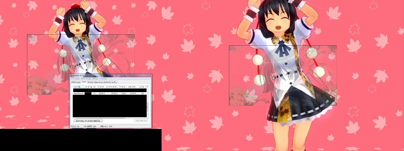 それはさておき。 まだ公開できる段階じゃないですが、いろいろ機能追加されてます。 設定画面作ったり不具合チェック終わったら近日中に公開予定です。 あいかわらず反響乏しいわ手持ちネタも底を尽きたわで 次のバージョンが最終版になる予感。 マルチモニタネタのは実装簡単だけど設定画面作るのが激しくダルイから見送り濃厚。 ネタ探しにニコ動PV影絵コミュ入ってみたけど…うーむ。